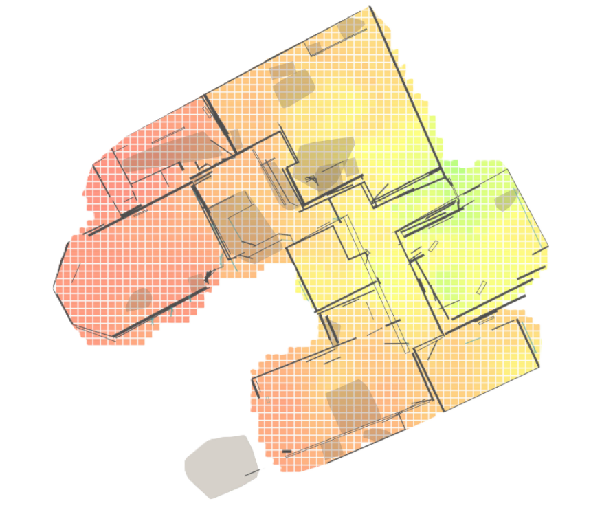 We scan room by room using professional Wi-Fi survey tools to produce a clear heatmap of coverage. This shows signal strength, weak areas, and problem spots.